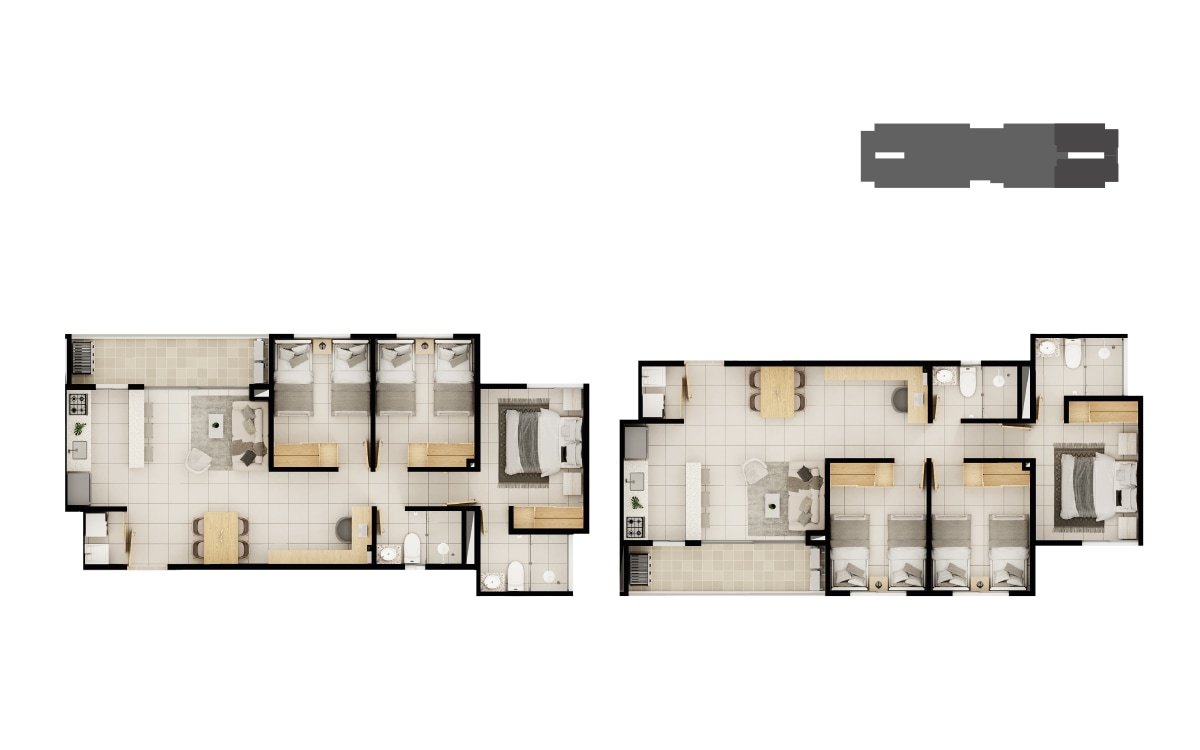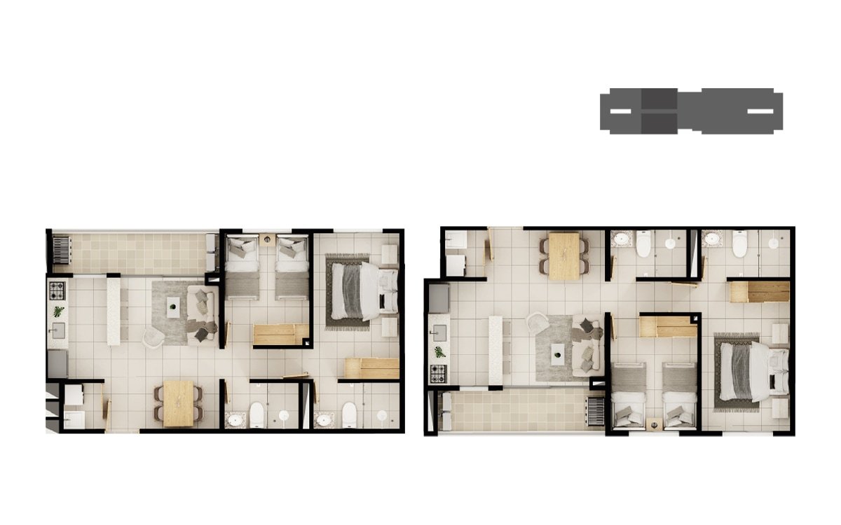 Los apartamentos en Aqua son de dos o tres alcobas y un amplio balcón con espacio para un BBQ, definitivamente el descanso y la desconexión son bienvenidos aquí!