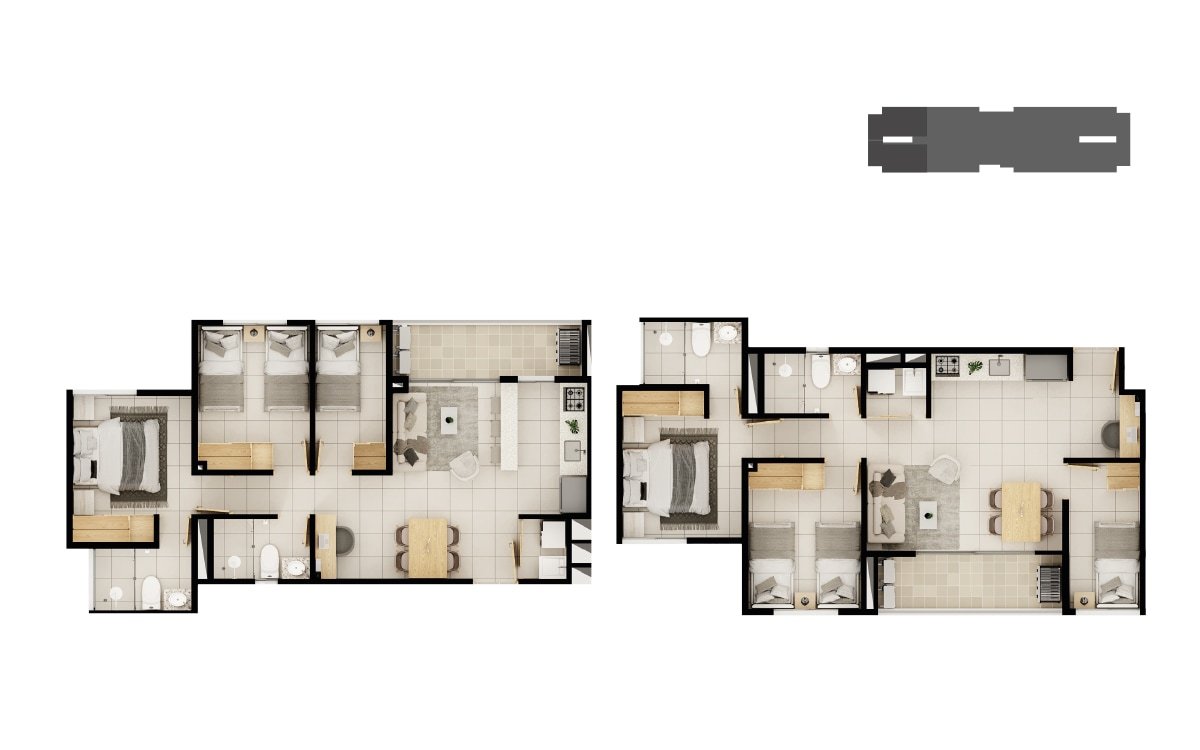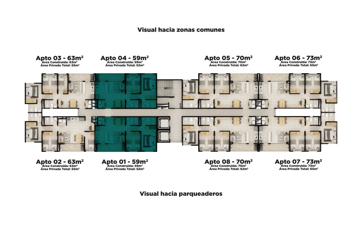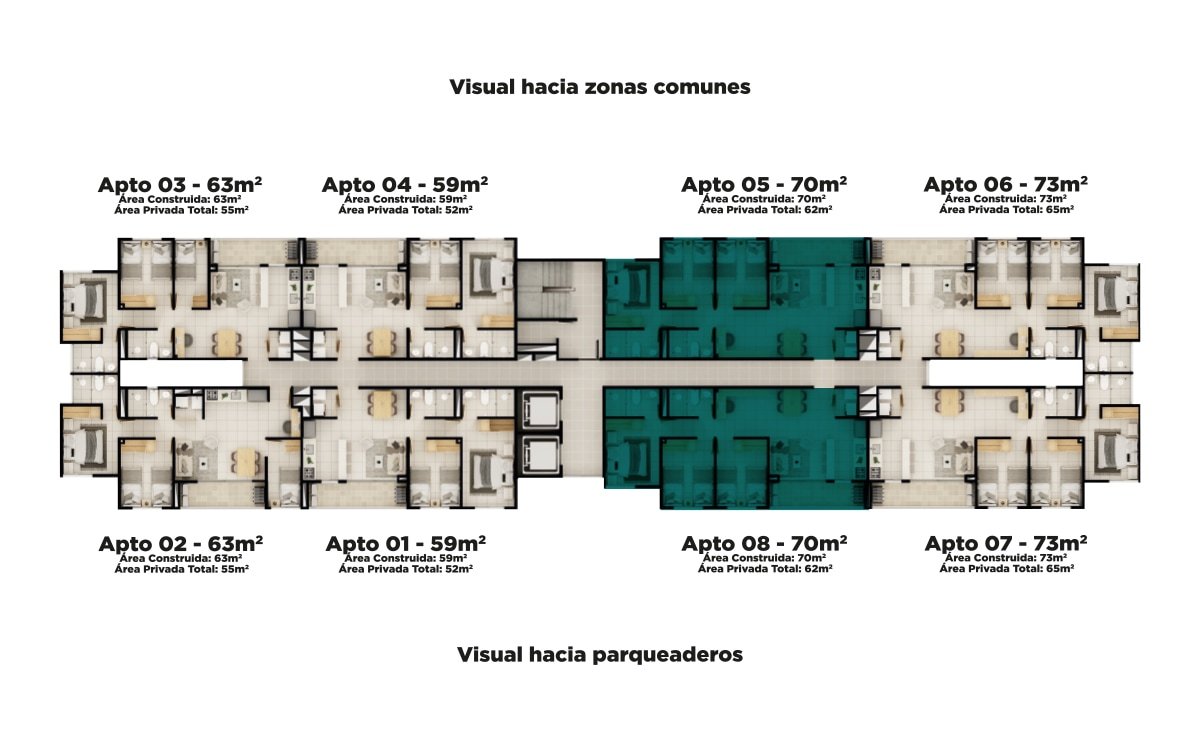 Las imágenes contenidas en este documento, así como el mobiliario, electrodomésticos, acabados y demás elementos accesorios que aparecen en las mismas son una representación ilustrativa del Proyecto y no comprometen contractualmente la responsabilidad de la Constructora, quien se reserva el derecho de realizar modificaciones al Proyecto en cualquier momento. La disponibilidades, áreas, calidad y demás elementos que se incluyen en las piezas publicitarias podrán tener variaciones posteriores a su publicación; por tanto, es necesario corroborar todos los datos en Sala de Negocios, previo a suscribir un contrato de vinculación al Proyecto Inmobiliario. Fecha de publicación: Enero 2025